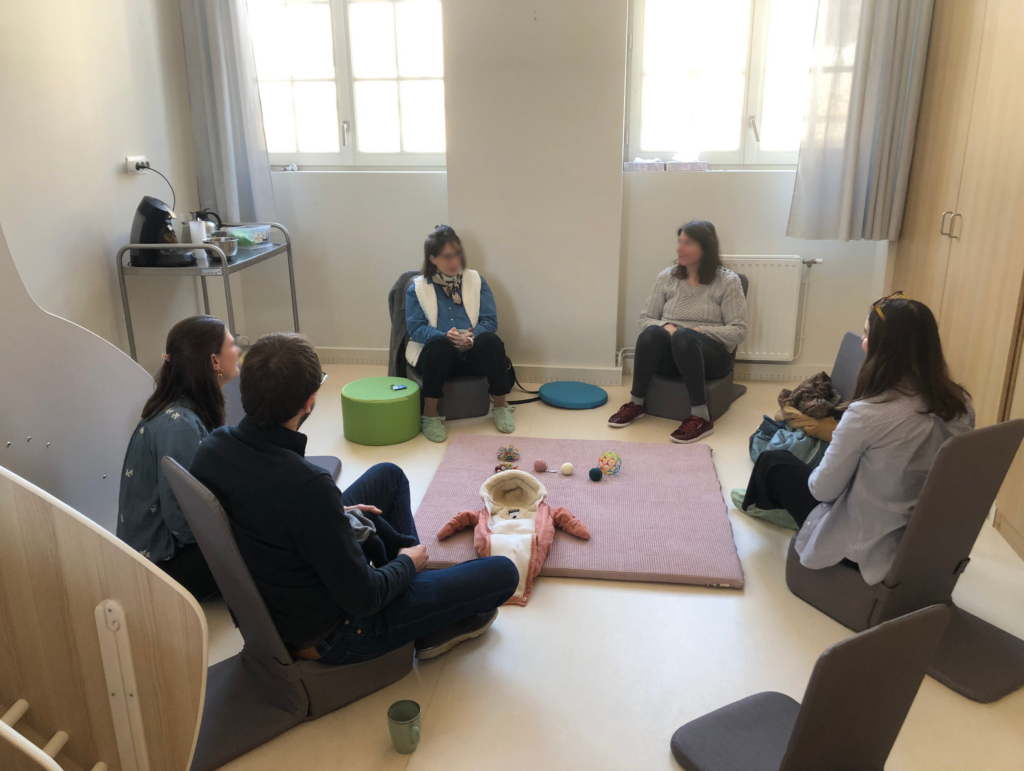 Ainsi, chaque groupe se réunit toutes les deux semaines durant 3 mois minimum pendant lesquelles 2 professionnel·les de la Petite Enfance les accueillent et ont pour rôle de faciliter les échanges, de créer un espace chaleureux et de répondre à leurs éventuelles questions sur le développement de l’enfant.